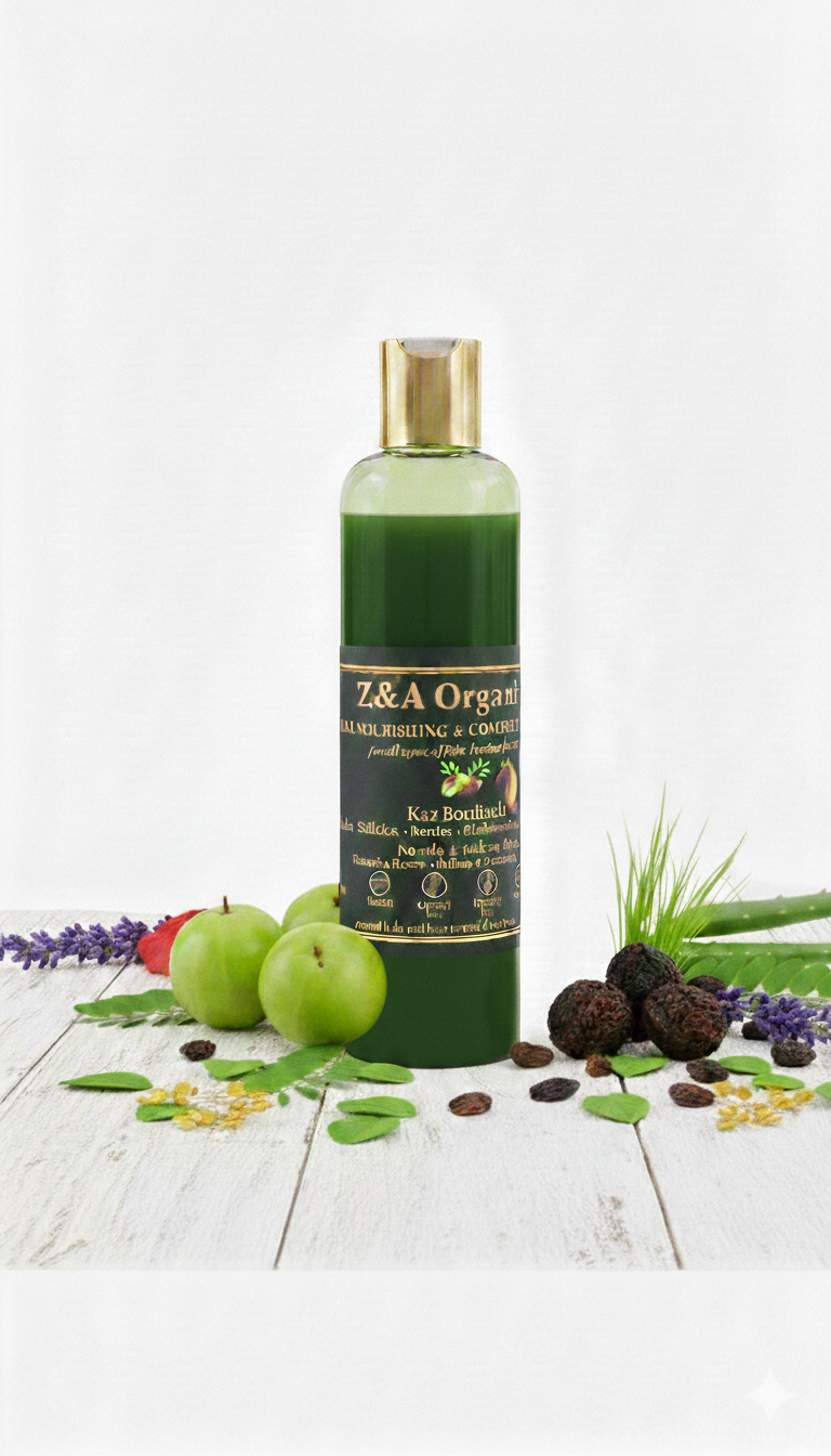 Z&A Organics Shampoo is a premium herbal hair care formula specially designed for weak, frizzy, undernourished, and slow-growing hair. Infused with carefully selected natural extracts and mild organic cleansers, it deeply cleanses while strengthening hair from the roots to the tips. This nourishing shampoo helps reduce hair fall, control frizz, and restore natural shine by improving scalp health and moisture balance. Its powerful blend of herbal nutrients promotes healthier hair growth, repairs damage caused by pollution and styling, and enhances hair thickness with regular use. Free from harsh chemicals, parabens, and sulfates, Z&A Organics Shampoo is gentle enough for daily use, leaving your hair soft, smooth, refreshed, and naturally revitalized with every wash.